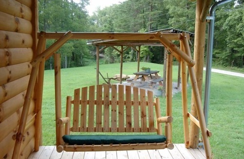 Bill's Place is a beautifully decorated cabin with lots of charm. It has a gas log fireplace and large hot tub to relax in. The living room has new furniture and a 42' TV. The cabin has central heat & air for your comfort. The huge yard has a picnic shelter and large front porch with a porch swing, rocking chairs, table and chairs. The open deck has large table and chairs with a charcoal/gas grill. Linens and towels provided. Cabin is very clean.