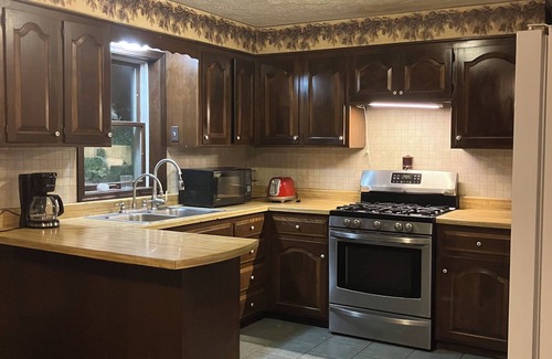 Your countryside getaway awaits at this charming 2-bedroom house surrounded by lush nature. With 2 queen beds and 2 bathrooms with showers, guests will find their stay here truly enjoyable. There is also a very large comfortable sectional with chaise lounge and electric recliner for additional sleeping space. The cozy heating and refreshing AC ensure a comfortable stay.