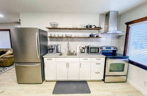 Kick back and relax in this calm, stylish space in a country setting. Beautiful new construction 1000 sq ft apartment attached to a country barn with quartz countertops, and stainless appliances. Home is stocked for each guest with towels, clean bedding, soaps. Enjoy WIFI, two smart TVs, kitchen, laundry, and more.