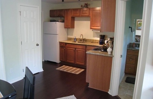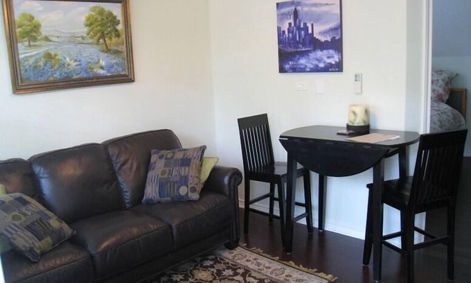 The guest house is located on the second level of the building and is accessible by stairs only. The building is completely private (no one lives downstairs). Solar panels on the roof supplement the building's energy systems and provide most of the electric and hot water usage.