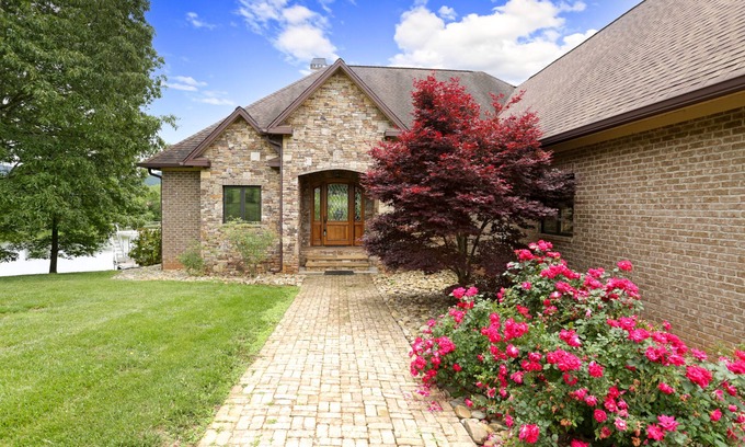 Beautiful lakefront home on pristine Lake Chatuge nestled in small cove in between Hiawassee and Hayesville. This home offers a private covered dock with safe swimming as there is very little boat traffic and waves. The lot and driveway are flat so no four-wheel drive needed and there is a garage for easy parking. The back yard is flat with grass for games for the entire family! There is a short brick path from the house to the dock. There is a fabulous fire pit near the dock for campfires, storytelling, and making s’mores!
