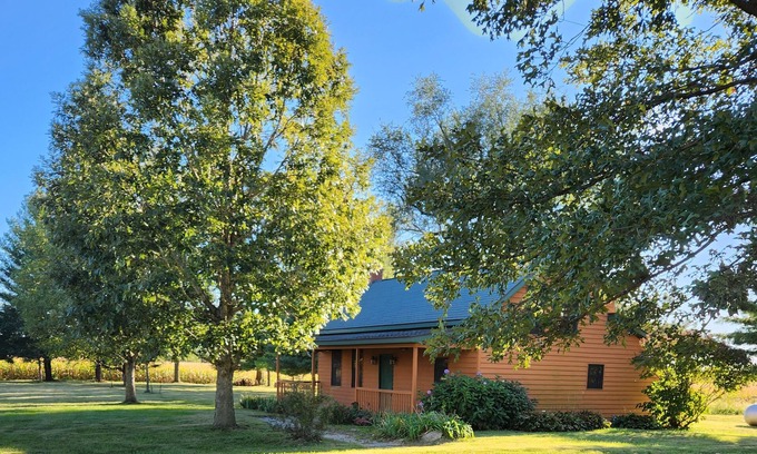 Relax in this peaceful cabin located on a 30 acre farm with picturesque views of the woods and farmland. Close to all the quaint river town of Grafton, IL has to offer, but removed from the crowds and the cars and the noise. You can spend your days discovering the shops, wineries, restaurants or local hunt clubs, while spending your nights stargazing or building a fire and eating s'mores. You can stay as busy, or not, as you'd like. It's truly the best of both worlds!