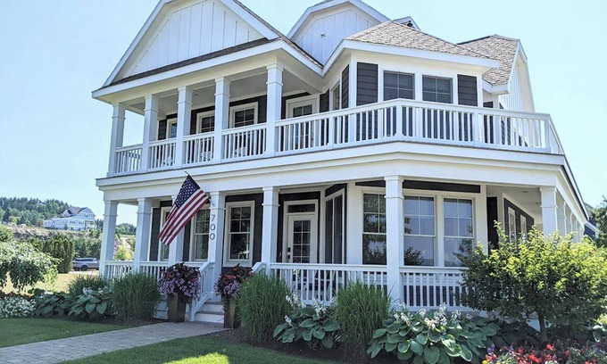 Welcome to Peaceful Escape 20 — a spacious 5-bedroom, 6-bath home in Petoskey that transforms into a warm retreat as the leaves change and snow begins to fall. Sleeping up to 10 guests, this is an ideal gathering place for families or groups wanting comfort, elegance, and seasonal charm.