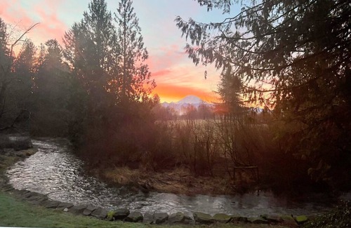 Escape to our tranquil forest retreat, where towering old-growth trees, a meandering creek, and breathtaking views of Mount Rainier create the perfect nature getaway. Whether you're seeking adventure or serenity, our secluded haven offers the best of both worlds.