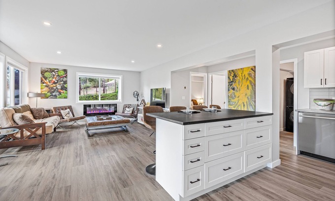 Welcome to your peaceful getaway! This private 1-bedroom, 1-bath suite offers self check-in, a cozy interior, and filtered lake views through the trees. Tucked away in a quiet, forested area just a scenic hike from Sparkling Hill Resort, it's the perfect base for nature lovers and relaxation seekers. The living room features a comfortable sofa bed that can accommodate up to two additional guests, making it ideal for small families or groups. Inside, you'll find a great selection of board games—perfect for unplugged evenings together. Expect total tranquility—no traffic noise, just birdsong and the occasional deer or bear passing by. Whether you're relaxing after a spa day, playing games with loved ones, or enjoying the fresh mountain air, this suite offers a cozy retreat in nature.