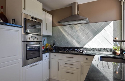 Layout: Ground floor: (Living room(TV, garden doors), Kitchen(hob(5 ring stoves, gas), electric kettle, hood, coffee machine, oven, microwave, dishwasher, fridge), toilet)