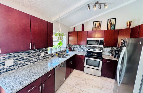 - This Brandon house boasts two inviting bedrooms with 2 queen beds, 1 full bath 🚿, full kitchen, 🍳 stove, fridge, air fryer, coffee maker, toaster, spacious living room, TV, and 2 dedicated 💻 workspaces with very fast WiFi. - The serene and calm atmosphere, birds singing during the day at lunch, and soothing decor make it a wonderful retreat for guests. Enjoy the convenience of amenities like a hair dryer, iron, and heating or cold AC. -Experience what Tampa Bay has to offer with a stay at our house-not far from Apollo Beach, Tampa, Busch Gardens, and the Seminole Hard Rock Casino.