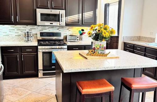 Come on out and Step into this spacious, 3000 square foot, newly remodeled home! It has all the essential amenities to make you comfortable while away! The 4 bedroom 2 bathroom home features high vaulted ceilings with lots of natural light. Enjoy the large family style kitchen and dinning area. Take in the peace and quiet of the neighborhood on the front porch or unwind in the large patio that is equipped with a grill and lots of outdoor seating.