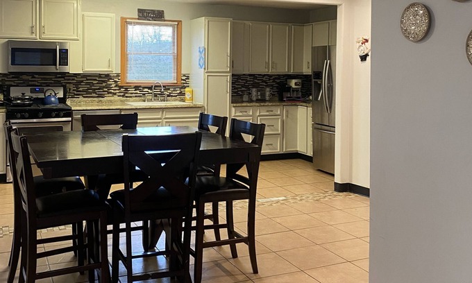 Newly renovation on the house meets the new modern looks and cozy cabin in the woods feeling. Far away enough from the city to have a quiet getaway and close to take a short ride to town. Huge backyard and a spacious home. There are many restaurants and shopping centres in the local Monroeville area. The main city of Pittsburgh is only 15-20 mins away.