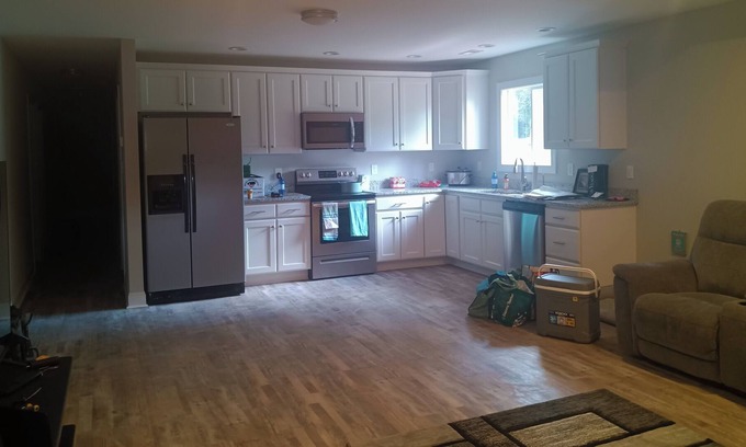 Quiet, cozy, very relaxing if you want to get away from civilization. Nice relaxing front porch and comfortable garage space. Big open kitchen and lots of space . This is the home that you never want to leave!