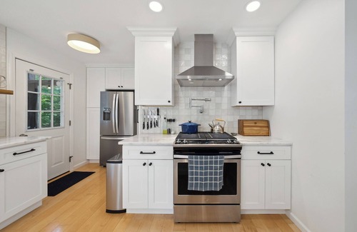 A living room, a dining area, a BBQ grill, and a fireplace are featured at this 3-bedroom, 2-bathroom rental. Bathroom amenities include a hair dryer, towels, and toilet paper. Prepare a home-cooked meal in the kitchen, complete with an oven, a stovetop, and a refrigerator, as well as a coffee maker, an electric kettle, and an ice maker. And because there's a washer and dryer, you can go a bit lighter on your packing.