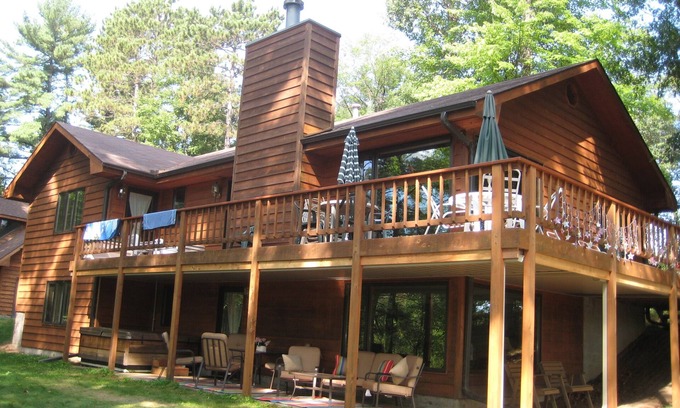 Peaceful Lake Home with 3 bed/3 bath+ 2 bonus bedrooms with 2 kings or 4 twins is located in Arbor Vitae. Peaceful Lake Home with 3 bed/3 bath+ 2 bonus bedrooms with 2 kings or 4 twins provides accommodation, featuring TV, Balcony/Terrace, Security/Safety, among other amenities. This House features TV, Balcony/Terrace, Security/Safety, to make your stay a comfortable one.
