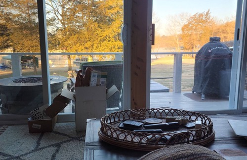 Awesome boating, skiing, sunning, and fishing are all at your fingertips! Beautiful Lakefront 2 br 2 ba cottage is situated on a fabulous level 1 acre lot with a covered dock. On peaceful cove with public boat launch within a quarter mile. Home includes king master with walk-in shower and queen guestroom with full bathroom. Sun room with electric fireplace, living room with woodburning, and both with lake view. Hot tub, deck with seating area, 2 firepits (one gas, one woodburning), pergola seating area, outdoor dining area with Blackstone griddle and green egg. Indoor dining area, updated kitchen, full-size washer/dryer, and flatscreen smart tv's throughout. Within 45 minutes of downtown Nashville and 10 miles from quaint Lebanon Town Square restaurants and shopping. Superb fishing, swimming, and boating (bring your own boat). 2 Kayaks available.