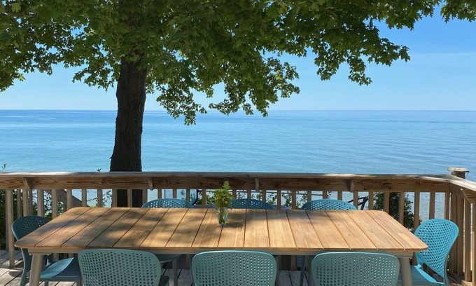 Wake up to the sound of waves from this peaceful, private retreat just steps away from beautiful Lake Michigan. There is plenty of room to spread out and relax in this spacious three-bedroom home with large decks built for lounging, dining, unwinding in the hot tub, and sunsets that light up the whole lake. The home offers three bedrooms: a large suite with a loft on the lake-side, a second lake-side bedroom, and an extra-large bunk room for the kids. Enjoy walks on the beach, a tree canopied road, and numerous nearby nature areas for hiking. Located between Harbor Springs and Cross Village off the famous Tunnel of Trees, Good Hart is a well-kept secret that offers privacy and escape while a short drive to many area restaurants and amenities.