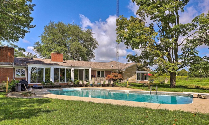 Escape the hustle and bustle of downtown and escape to this idyllic abode on a 30-acre horse farm! The peaceful Lebanon vacation rental home features 4 bedrooms and 3 bathrooms, plus an outdoor pool. Spend your days unwinding on the private patio with a favorite cocktail and soak up the enchanting sights and sounds of countryside living. When you're ready for more adventure, there are plenty of parks and golf courses nearby. Miami Valley Gaming and Kings Island are also just a short drive away.