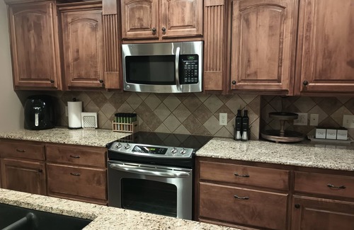We are a smoke free home, inside & outside. Quiet country feel with relaxed back porch seating, yet less than 10 minutes from Springfield, Ozark, Nixa and Rogersville. 35 minutes from Branson. Various attractions: Silver Dollar City, Bass Pro, Wonders Of Wildlife, Nature Center, Multiple Parks, Lamberts, Downtown restaurants and shopping. A master suite with private setting room, attached bathroom and walking closet. A mini suite with attached bathroom and walking closet. A bedroom with adjacent hallway full bathroom. All rooms have a queen adjustable bed and Roku TVs. Living room has a gas fireplace with TV mounted above. Dining room that seats six. Coffee bar and full laundry room. Kitchen equipped with basic cooking necessities. Attached 2 car garage.