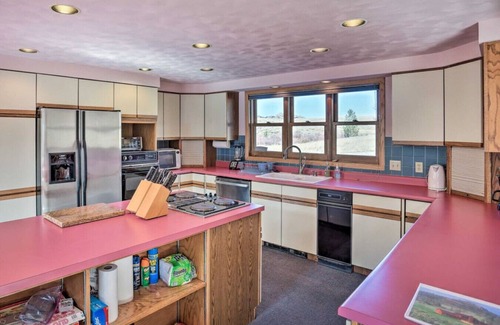 Outdoorsmen, here`s looking at you! This Glenrock vacation rental by FunStay Homes offers direct access to hiking, hunting, fishing, and more, so you won`t have to travel far for a little adventure. If you`d prefer to explore from home, say hello to passing elk and antelope from the backyard, break out the telescope for stargazing on the deck, or simply kick back and admire the views. When night falls, take your pick from the cabin’s 5 bedrooms and 2.5 baths and let the quiet of the country lull you to sleep.