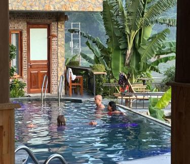 Peaceful MaiChau Homestay in Mai Châu provides accommodations with a garden and a bar. With garden views, this accommodation features a terrace and a swimming pool. The bed and breakfast provides rooms with air conditioning, free private parking, and free Wifi. At the bed and breakfast, units include a balcony. There's a private bathroom with bidet in every unit, along with bathrobes, slippers, and a hair dryer. At the bed and breakfast, each unit is equipped with bed linen and towels. Guests at the bed and breakfast can enjoy a buffet breakfast. The nearest airport is Tho Xuan Airport, 79 miles from Peaceful MaiChau Homestay.