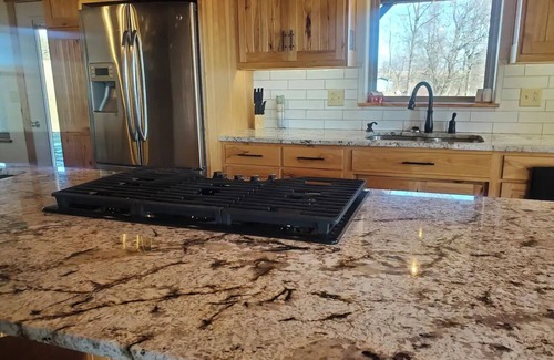 This beautiful home is located in the hills of Amish county, it has plenty of space for the whole family, a gorgeous kitchen with all your basic cooking utensils, a pebble pit and sand box for the kids, and beautiful views of the country side.