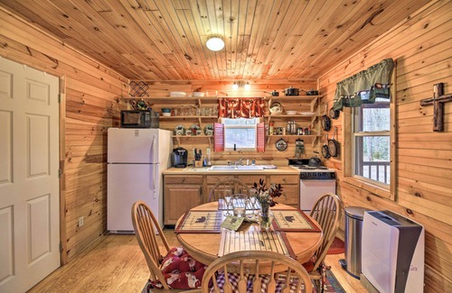 Coming for a couple's retreat, small family getaway, or a Mountain City solo adventure? Then look no further than this charming vacation rental on Cross Creek Ranch! The quaint cabin sits on 95 private acres and includes a lofted sleeping area, a bathroom, a well-equipped kitchen, a screened porch, and stunning views. Spend relaxing days in nature at Doe Mountain Recreation Area, enjoy a glass of merlot at Watauga Lake Winery, or make s'mores around the fire under a star-studded sky.