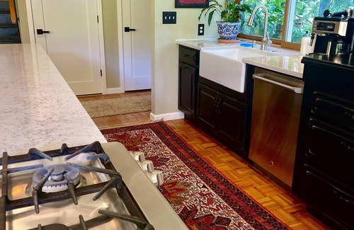 Renovated upstairs townhome with separate private entrance and driveway. Living room, fully stocked kitchen and large expansive private deck with dining. New high end appliances, convection oven, refinished oak floors and vaulted ceiling with large windows to our koi pond and backyard. One king size bed, one queen and one twin bed. Radiant in-floor heating for winter comfort. Lounge among 100' Douglas fir trees in privacy. The house is on Squak mountain in Issaquah, less than 1 mile from historic old town Issaquah. We are the owners next door but will not disturb you unless we are needed. Running children inside are not allowed. There is too much potential for damaging musical instruments and artwork and the vast expanse of glass windows is dangerous for a child if they fall. Additionally, we live below and despite the extensive soundproofing, impact noise from running feet permeates below.