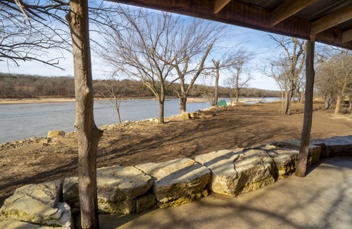 The cabin sits on a beautiful stretch of the Arkansas river with a mile of shoreline and 130 acres of secluded, quiet land. There is plenty of space to explore, hunt, fish, play in the water, or take a multiple mile float or boat trip down the river. There are 3 RV hookups for those with extra folks and stuff to bring along.