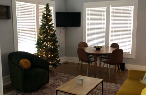 Enjoy a comfortable stay in a completely renovated 1930s home in the heart of Pocahontas. This home has 3 living areas, 3 bedrooms, 2 bathrooms, a fully equipped kitchen, a huge back yard with a privacy fence, fire pit, big deck and propane grill. Fast WIFI, comfortable beds, washer/dryer, central heat & air and flat screen TVs with Netflix and Amazon Prime will make your stay here a pleasure. Convenient location. Plenty of parking. Lots of privacy.
