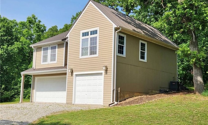 This 3-bedroom house with 3-car garage on 9 wooded acres is the perfect lake escape. With 1 king bed, 2 full beds, and 2 twin beds, this marvelous property offers a peaceful retreat for guests. Explore the woods of Missouri by blazing your own trail or watch the wonders of nature and all it entails. Enjoy lake access with boat ramp at Fisher's Cove just 0.5 miles away, a quick 2 minute drive. A bathroom off the garage allows you to wash up or wash off after hours of fun or fishing.