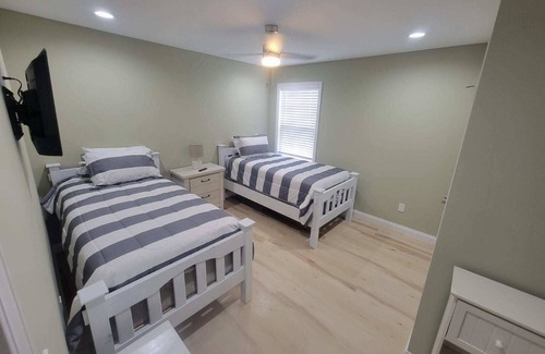 Relax with the whole family at this very pleasant place to stay. This is a fully furnished 3 bedroom & 2 bath private home. It's also a new build in 2024 and designed for family vacations. You'll have 2 Queen size beds and 2 twins beds in this country home. It is listed for 6 people, but this house will sleep 8 pretty easily if we include 2 living room couches that would work if needed. It is just 5-10 minutes away from Mammoth Cave and all of the featured attractions. Plenty of closet space, your own kitchen and a very large television in the living room, along with a TV in each bedroom.