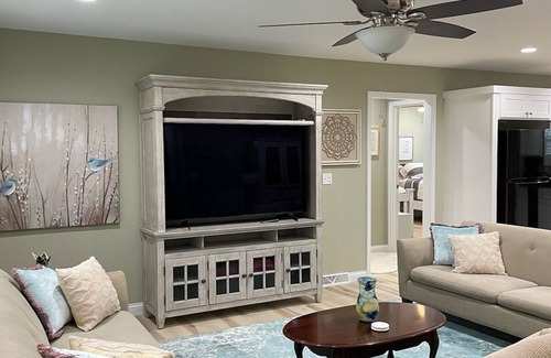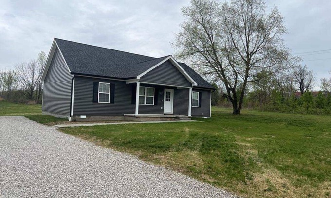 Relax with the whole family at this very pleasant place to stay. This is a fully furnished 3 bedroom & 2 bath private home. It's also a new build in 2024 and designed for family vacations. You'll have 2 Queen size beds and 2 twins beds in this country home. It is listed for 6 people, but this house will sleep 8 pretty easily if we include 2 living room couches that would work if needed. It is just 5-10 minutes away from Mammoth Cave and all of the featured attractions. Plenty of closet space, your own kitchen and a very large television in the living room, along with a TV in each bedroom.
