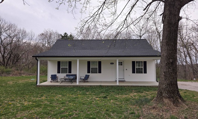 Relax with the whole family at this very pleasant place to stay. This is a fully furnished 3 bedroom & 1 bath private home. It's also a new build in 2021 and designed for family vacations. You'll have 1 King size bed and 2 Full size beds in this country home. This house will sleep 7 pretty easily. It is just 5-10 minutes away from Mammoth Cave and all of the featured attractions. Plenty of closet space, your own kitchen and a television in the living room, along with a small TV in each bedroom. Covered front porch and a nice back deck with outside furniture and grill. Living room and kitchen is connected with a small dining room table. You'll have 3 bedrooms with comfortable sleeping arrangements, along with 1 bathroom to share. You'll park in the driveway. Plenty of space.