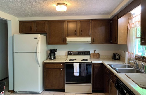 Come for a peaceful stay at the foot of the mountain, 54 miles from Penn State football, 12 miles from skiing. This lovely three bedroom house sleeps 6. The master bedroom adjoins the full bath, which can also be accessed from the hallway. The other two bedrooms offer a full-size bed and bunkbeds, great for family or friends. Bed, bath and kitchen linens are provided. This home includes fully equipped kitchen, with dining room and living area with Wi-Fi and TV with ROKU, to log in to all your subscription services. The carpeted downstairs family room provides a nice space to play games and relax with friends and family. A deck off the back of the house offers lovely views of the mountain, where you can hear the quiet rippling of the nearby stream and see deer and other wildlife pass through. A moveable fire ring makes the back yard a lovely place to sit and enjoy a starry night by the fire or a fun day playing games in the large yard. The attached garage lets you park and easily unpack for your stay. The full size washer and dryer are a great addition for cleaning up after a day of adventure or a week of relaxation. This house is nearly 2000sq/ft of living space and is situated on a large .70 acte lot. This is a clean smoke free and pet free property.