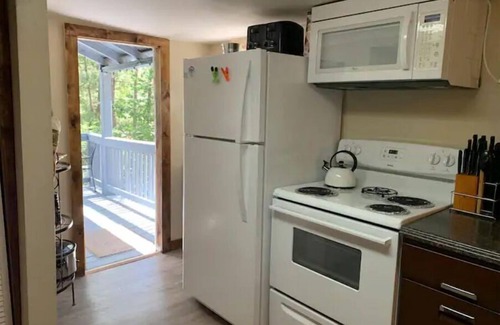 Amenities include Wi-Fi, Smart TV, complete Kitchen, Deck with gas grill, and a quiet secluded Hot Tub. Central heating and air conditioning to be comfortable in both winter and summer. The added wood stove is a great place to relax and visit by. Paved drive makes it easy to access in any type of weather.