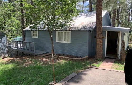 - A cozy cabin, pet friendly with covered deck surrounded by beautiful pine trees!