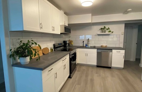 Located at the end of a cul-de-sac, suite is accessed through a side gate to a fully fenced backyard that guests are welcome to enjoy. Suite is above ground, bright and spacious with 2 bedrooms, 1 bathroom & your own private laundry. Brand new appliances in newly renovated kitchen.