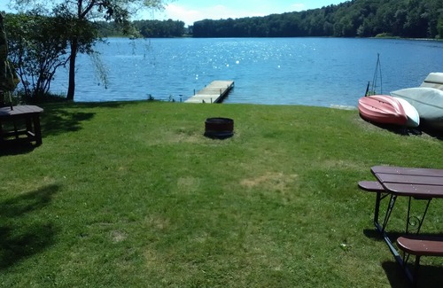 Enjoy peace and quiet in this cozy 2 bedroom cottage on a beautiful, secluded lake. The cottage has been completely remodeled with central air and heat. It sleeps 5 with double-size bunk beds in one bedroom and a queen size bed in the other. A canoe, 2 kayaks and a vintage rowboat are available free of charge. The lake is adjacent to Barry State Game Area and located less than 1/4 mile from the North Country Nation Scenic Trail, Circle Pines Center and the Barry Roubaix bike trail. Yankee Springs Recreation Area with fishing, hunting, hiking, mountain biking, horseback riding and water sports is just a few miles away. So is the quaint town of Hastings and all sport, Gun Lake. The whole area feels like a piece of Up North in Southwest Michigan. The cottage also features a fireplace and an outdoor fire pit to warm up a chilly evening. The fishing is good and there is a sandy area for swimming