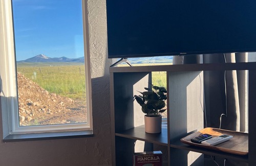 This is a BEAUTIFUL cabin with stylish touches, clean lines, and spectacular mountain views via massive windows, the Alturas MTN View Cabin is the newest getaway on our 10-acre property. Only minutes from town but you'll feel miles away and surrounded by peace, quiet, and mountains in all directions.