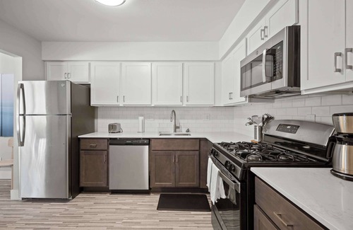 The accommodating apartment boasts a spa-like full bathroom stocked with pampering towels and necessities to ensure a carefree stay.