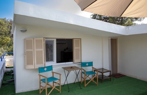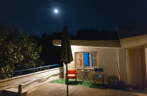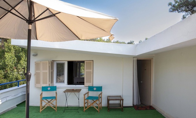 This cozy apartment is on the roof of a villa surrounded by trees. The only sound you will hear will be the song of the birds and the wind. There is partial sea view from one side and mountain view from the other. The best feature is the outdoor shower cabin! You will enjoy your shower while admiring the stars and yes we have arranged bathrobes for you so no worries there! There is a fully equipped kitchen and the bathroom. If you are looking for relaxation then this is the right place for you!