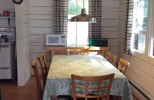 Experience beautiful sunsets over the crystal clear, sandy bottom Great South Pond while sitting on the 40 x 8' wrap around porch only 50 feet from water's edge or park a few chairs on the 25feet of private beach w/dock & watch the occasional swan go by. Kayaking, canoeing, fishing, picnicking, bird watching, hiking... take your pick (use of two kayaks and a canoe are included for the duration of your stay)! The cabin is connected via dirt roads & paths to many hundreds of acres of forest & the area is home to a multitude of wildlife.