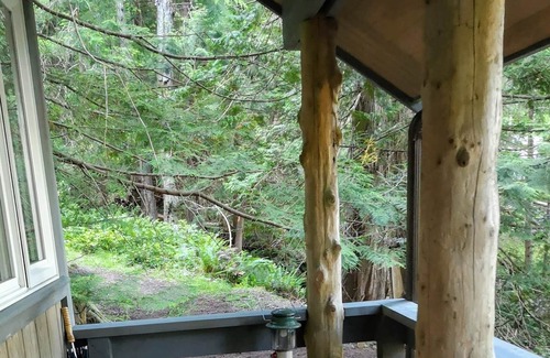 Peaceful rustic cabin in a tucked away location on Gorge Harbour. Great location for kayakers, campers and outdoor enthusiasts. Unplug in nature with lots of trees and tidal inlet access. Simple comforts with propane lighting/stove/fridge (no electricity), outhouse and outdoor shower (no hot water).
