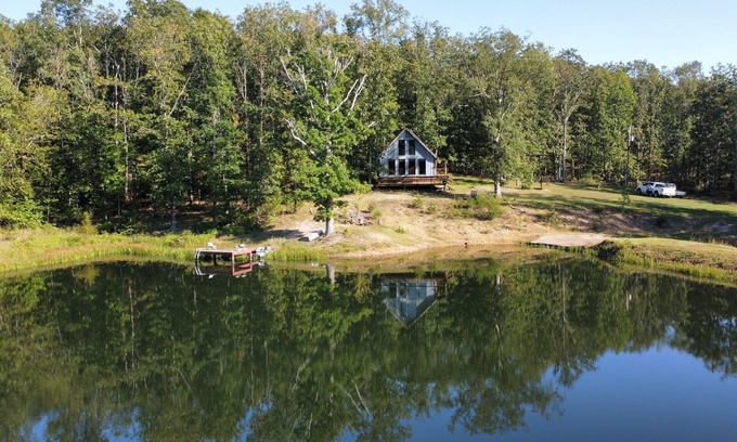Peaceful secluded cabin nestled on 40 wooded acres overlooking 4 acre pond. | Cabin in Cabool