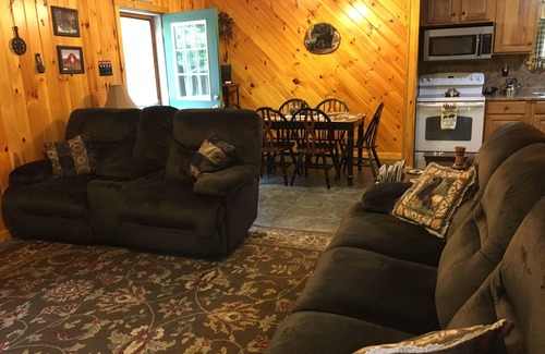 WE STILL HAVE LAST TWO WEEKS IN AUGUST AVAILABLE, ALSO LABOR DAY WEEKEND IS OPEN, SCHEDULE FOR SEPT. AND OCT. NOW. Bear Tracks Cabin is in a peaceful mountain setting. Secluded enough to get away from it all, but within driving distance to activities. Wrap around deck with rocking chairs, picnic table, children's picnic table, chairs and benches. Fire ring with wood provided for campfire. Charcoal grill. Fully furnished. Full kitchen includes full size refrigerator, stove with oven, microwave, pots, pans, dishes, silverware, cups. All you need to bring is your food. Full bathroom with shower, towels provided. Sleeps 8 - bedroom with queen size bed, bedroom with 4 twin beds, Reclining sofa and reclining loveseat, TV room with Queen Sleeper Sofa. Bed linens supplied and beds made for arrival. Ceiling fans throughout. Electric heat and gas fireplace. 2 TV's with DVD players. Plenty of family movies and games. No cable and No Wifi but great place to disconnect. ATV's welcome. Non-smoking, no pets allowed. Beautiful Fall Foliage. Walk the mile loop, you may see deer, porcupine, wild turkeys, quail and maybe even a bear. Great stargazing, on a clear night you can see a million stars!!! Grocery store, pharmacy, pizza place and mini market 20 minutes down the mountain. Past that is Walmart, fast food, and family restaurants. Only 40 minute drive to Wellsboro and PA Grand Canyon. 30 minutes away is Hills Creek State Park and Tioga-Hammond Lake, both have swimming, fishing, boating, hiking, picnic area. 40 minutes North is Corning Museum of Glass, and Watkins Glen State Park for walking through waterfall area. All make great day trips and then come back to the peacefulness of the mountain. Open year round. Winter Special - January through April - stay 2 nights, get the 3rd night free.