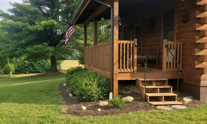 Our rustic log cabin offers beautiful mountain views. Peaceful, very secluded. Located upon a mountain ridge in Gap Mills, WV. Only 0.4 miles from the main road. Travel to the top of a mountain ridge on a narrow, graveled country road. While staying at our cabin, listen to the sounds of nature and enjoy the wildlife and scenery and smell the fresh country air. Wild turkey, deer and other wildlife roam freely on our property. Watch a mountain sunset, listen to the hush of early morning. Sit on the covered porch with an inviting swing, and rocking chairs to relax and enjoy peace and quiet. Stargazing and sitting by an open campfire at night. You will enjoy the peaceful tranquility of our cabin. This is truly a special mountainous, secluded location.