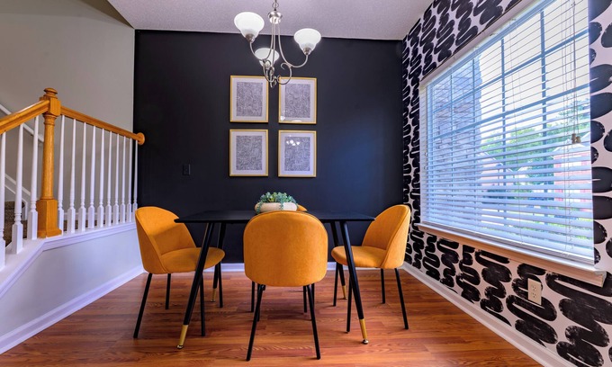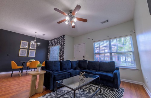 This quaint townhome features a cozy atmosphere perfect for guests looking to unwind. Enjoy the fully stocked kitchen, oversized master, in-unit laundry, fast WiFi & more. 20 mins to airport and downtown ATL, this centrally located townhome is the perfect home away from home for traveling nurses, families, or corporate stays. With easy access to shopping, dining, and major highways, it has comfort, convenience & space for longer stays! Sleeps 4. The bedrooms offer a nice king bed and a brilliant queen bed for a comfortable night's sleep. With 2.5 bathrooms, including a jetted bathtub, guests can relax and rejuvenate after a day of exploring the city. We hope you enjoy what our place and all Atlanta has to offer.