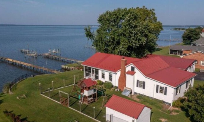 Beautiful home with stunning sunset views on the lower Potomac River. Home features a private pier, fire pit, theater room, and play area for kids!