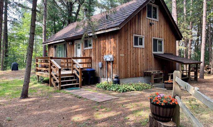 Unplug. Unwind. Connect with nature. Come enjoy our 700 sq.ft. cabin on 6 wooded acres. Fish the trout stream, hike, bike, swim! See hummingbirds hover at the feeder, watch for deer or bald eagles. The outdoor recreational opportunities are endless. Listen to the wind whisper while you sway in the hammock. Play in the treehouse! Escape to the peaceful pines and let whippoorwills sing you to sleep at day's end.