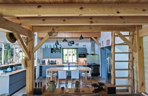 Peaceful wooden house in a green setting 10 minutes from the beach! is located in Le Porge. Peaceful wooden house in a green setting 10 minutes from the beach! provides accommodation, featuring Internet, Laundry, Parking, among other amenities. This House features Internet, Laundry, Parking, to make your stay a comfortable one.