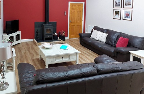 Living room: Freeview TV, DVD Player, CD Player, Woodburner