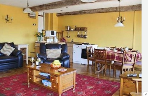 Dog friendly cottage, Large Family spacious Lounge, with large leather circle sofa, large dinning table for cozy meals on to sit round and chat or some board games, with a Bluetooth light for playing your favourite music. Wi-fi and Tv. Fully fitted kitchen area with dishwasher.